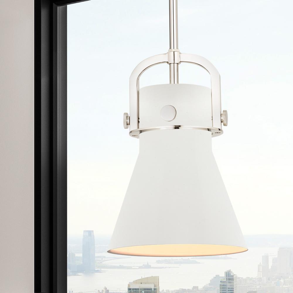 Newton Cone - 1 Light - 8 inch - Polished Nickel - Matte White Shade - Mini Pendant