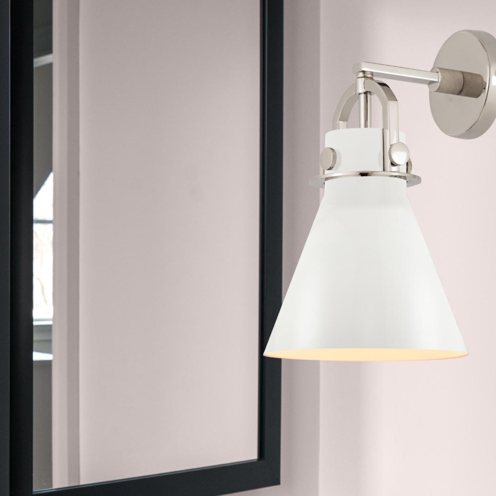 Newton Cone - 1 Light - 8 inch - Polished Nickel - Matte White Shade - Sconce