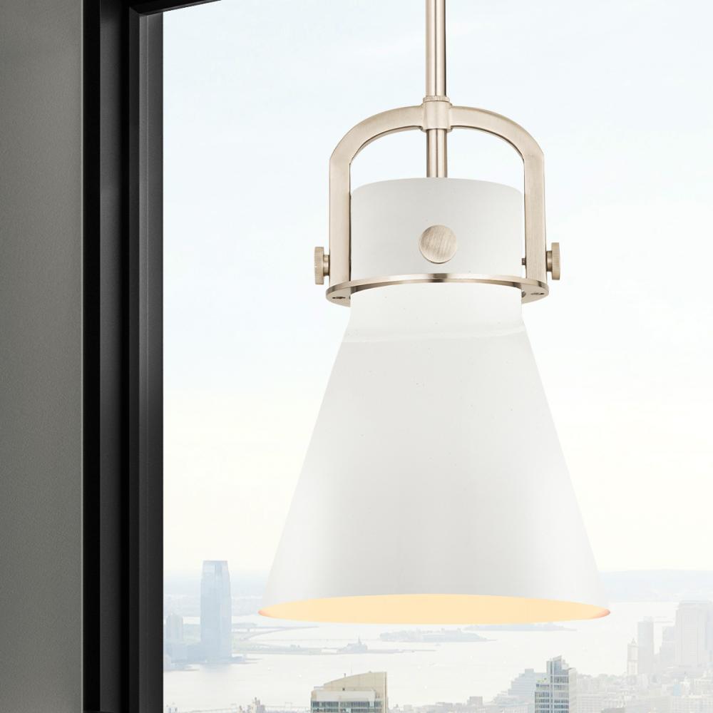 Newton Cone - 1 Light - 8 inch - Satin Nickel - Matte White Shade - Mini Pendant