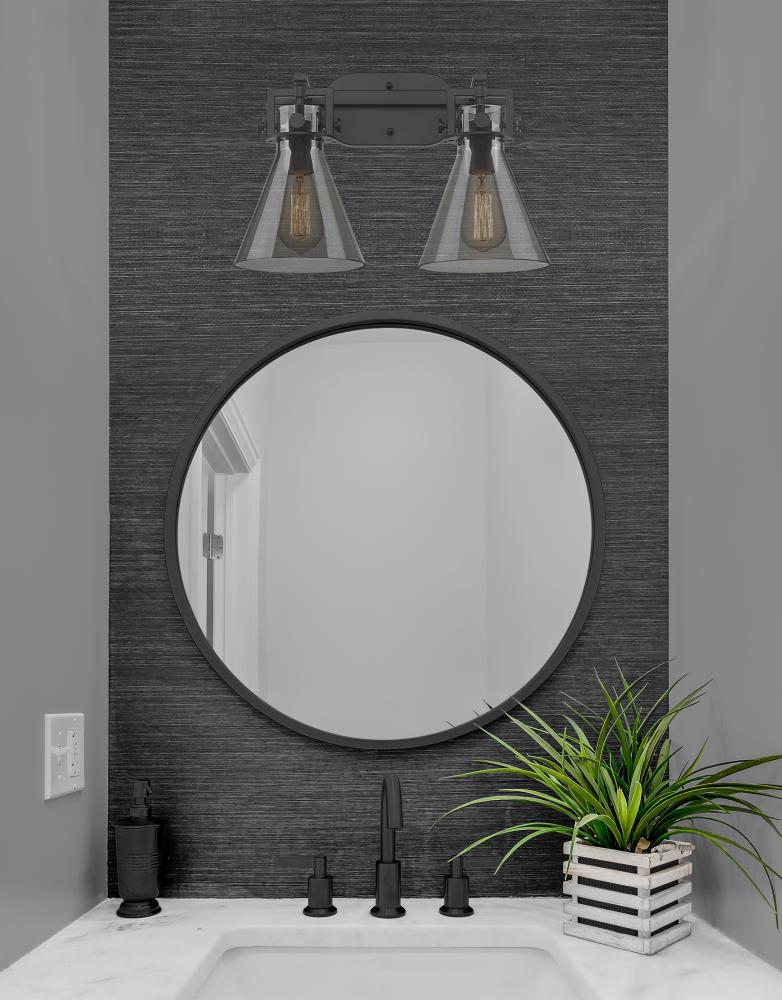 Newton Cone - 2 Light - 17 inch - Matte Black - Light Smoke Shade - Bath Vanity Light