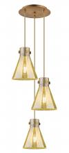 Newton Cone - 3 Light - 16 inch - Brushed Satin Nickel - Clear Shade - Multi Pendant