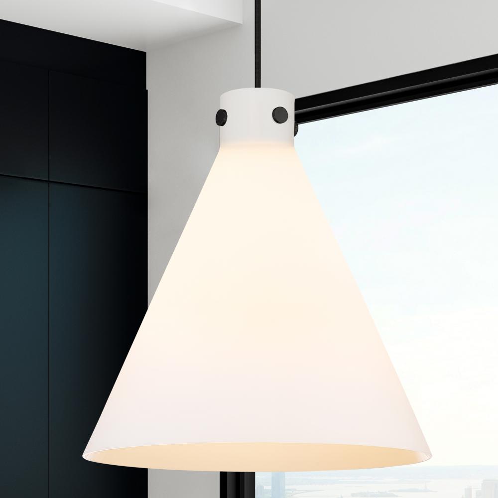 Newton Cone - 3 Light - 18 inch - Matte Black - White Shade - Cord hung - Pendant