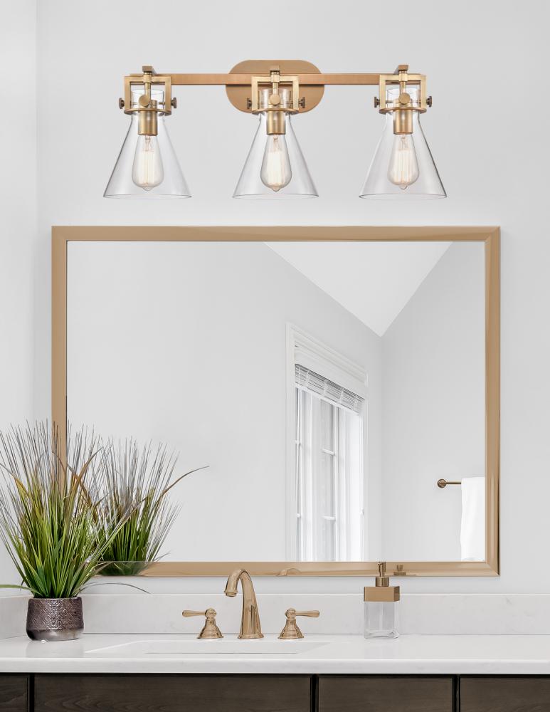 Newton Cone - 3 Light - 27 inch - Brushed Brass - Clear Shade - Bath Vanity Light