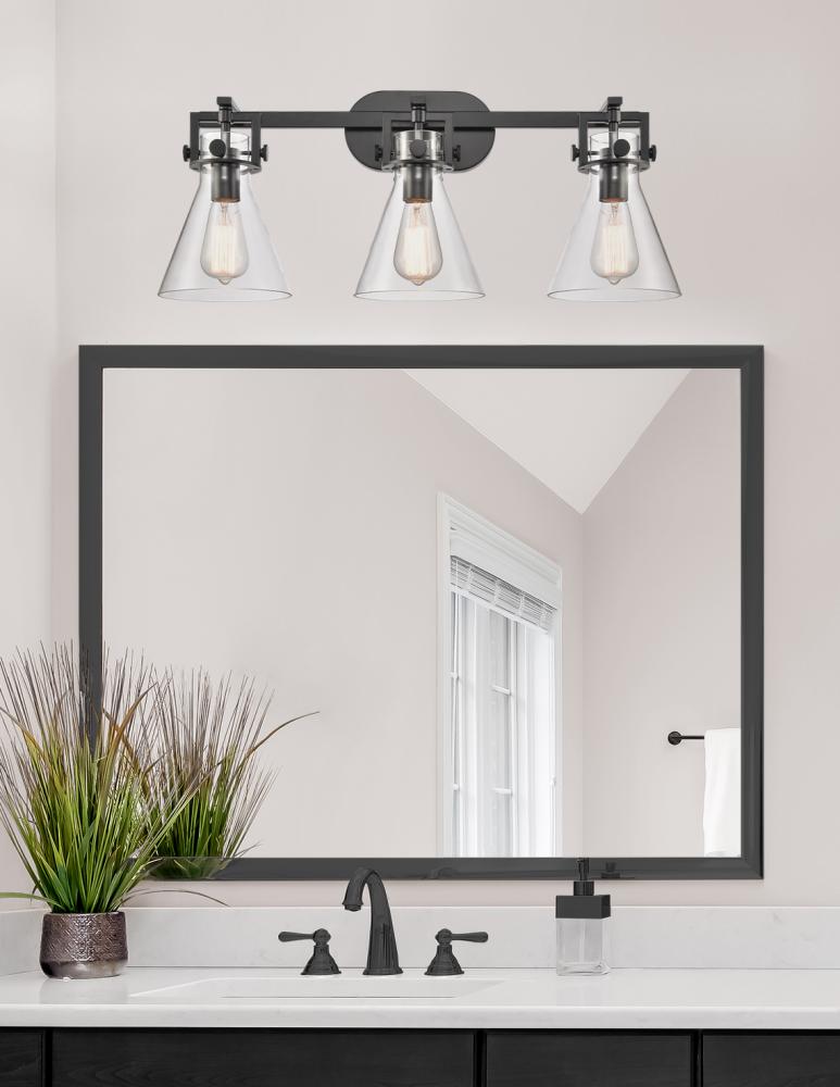 Newton Cone - 3 Light - 27 inch - Matte Black - Clear Shade - Bath Vanity Light