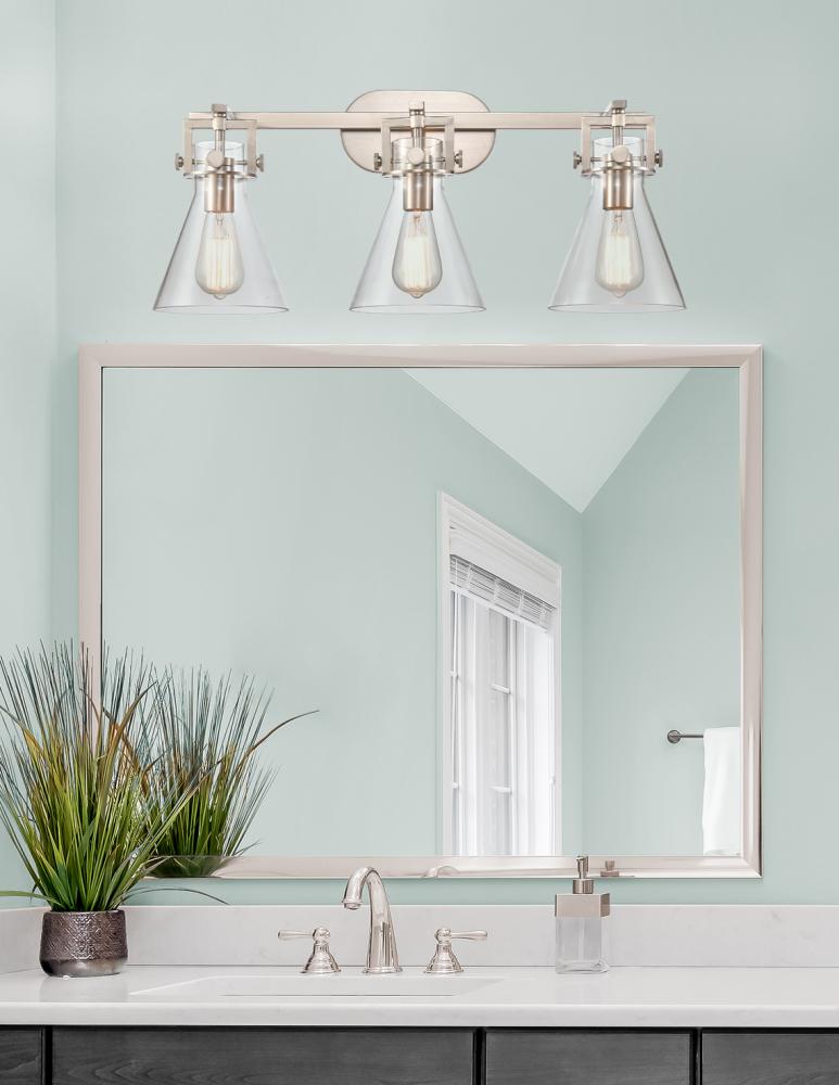 Newton Cone - 3 Light - 27 inch - Satin Nickel - Clear Shade - Bath Vanity Light
