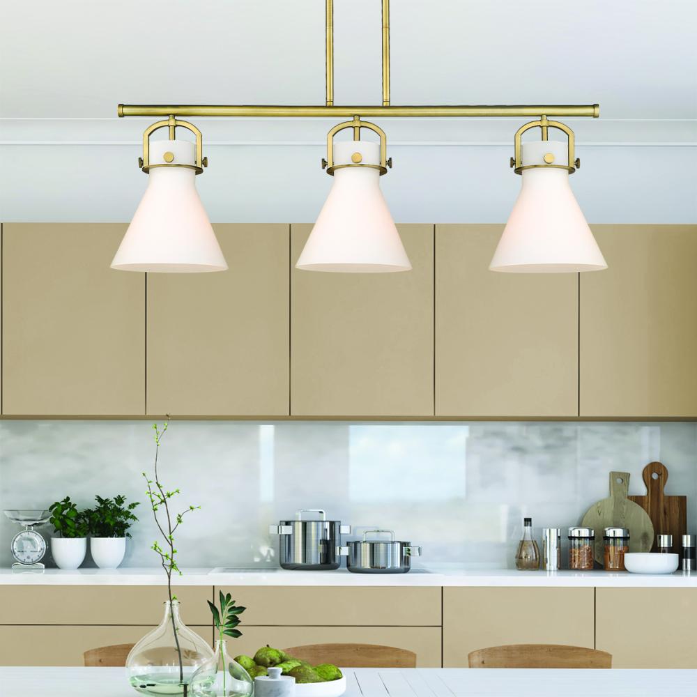 Newton Cone - 3 Light - 42 inch - Brushed Brass - White Shade - Island Light