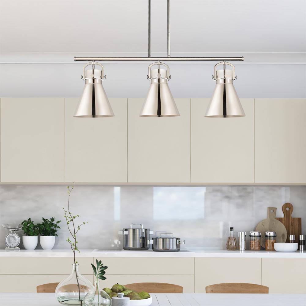 Newton Cone - 3 Light - 42 inch - Polished Nickel - Polished Nickel Shade - Island Light