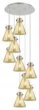 Newton Cone - 9 Light - 22 inch - Brushed Satin Nickel - Clear Shade - Multi Pendant