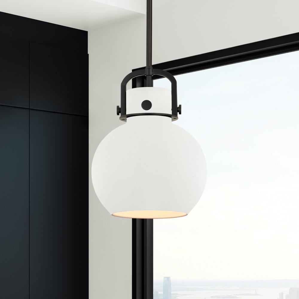 Newton Sphere - 1 Light - 10 inch - Matte Black - Matte White Shade - Mini Pendant