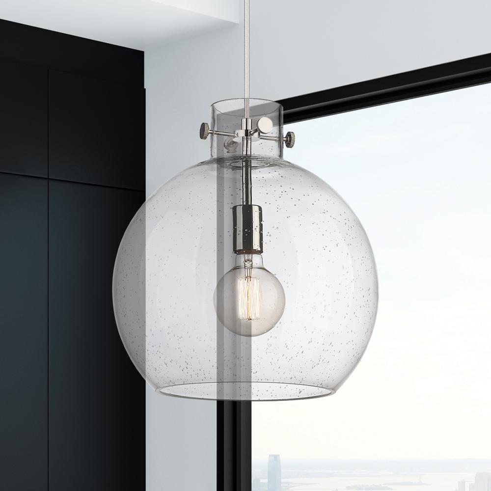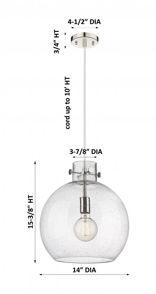 Newton Sphere - 1 Light - 14 inch - Polished Nickel - Seedy Shade - Cord hung - Pendant