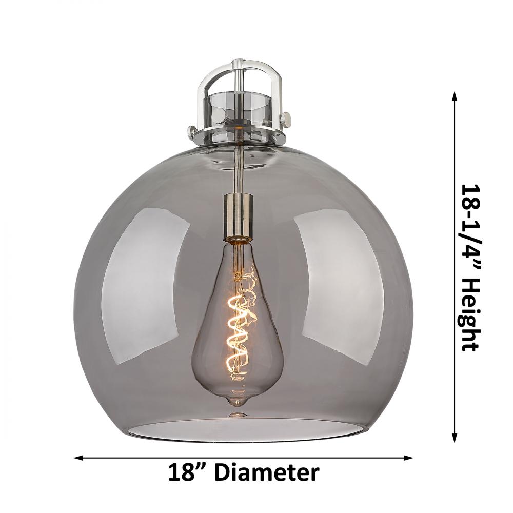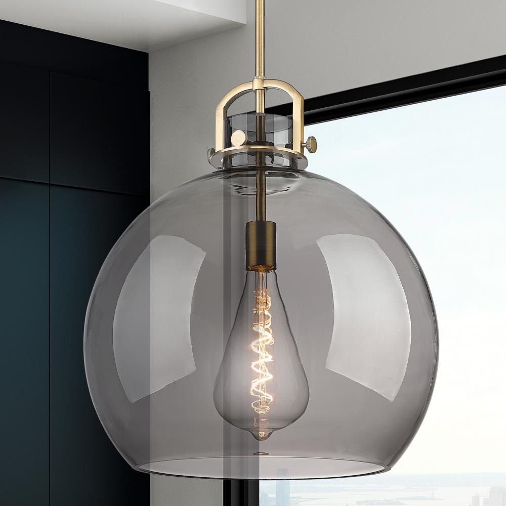 Newton Sphere - 1 Light - 18 inch - Brushed Brass - Light Smoke Shade - Pendant