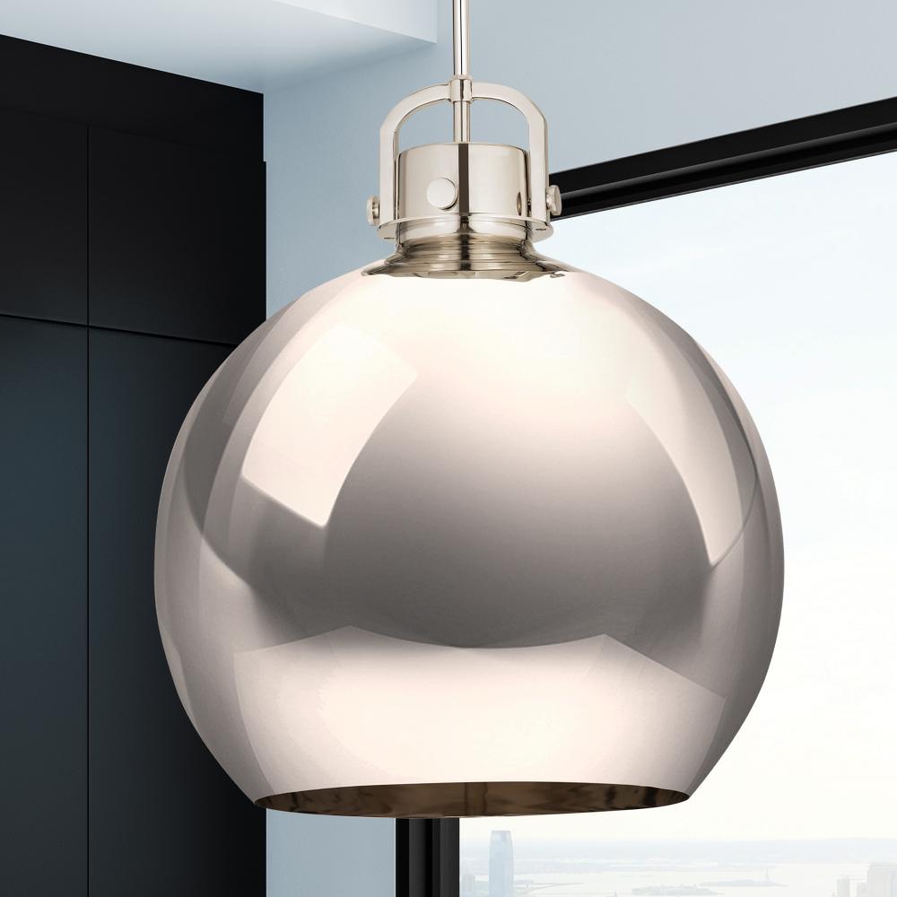 Newton Sphere - 1 Light - 18 inch - Polished Nickel - Polished Nickel Shade - Pendant