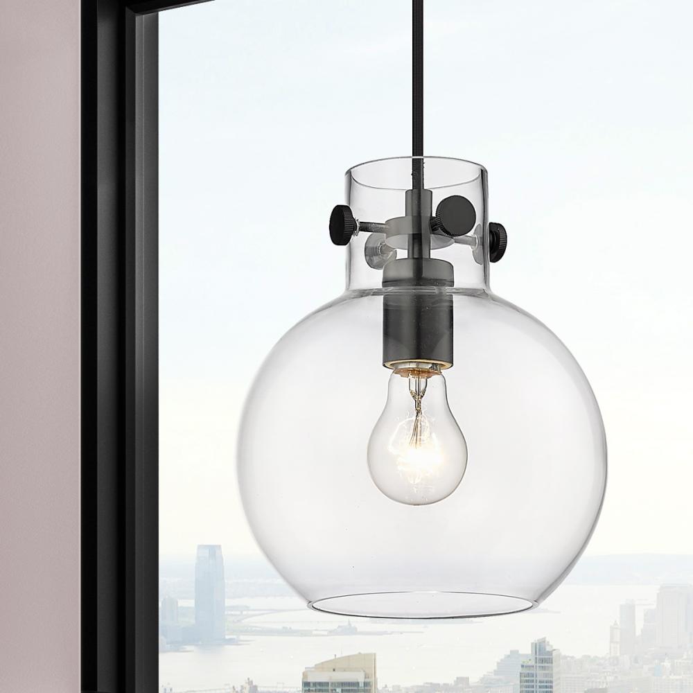 Newton Sphere - 1 Light - 8 inch - Matte Black - Clear Shade - Cord hung - Pendant
