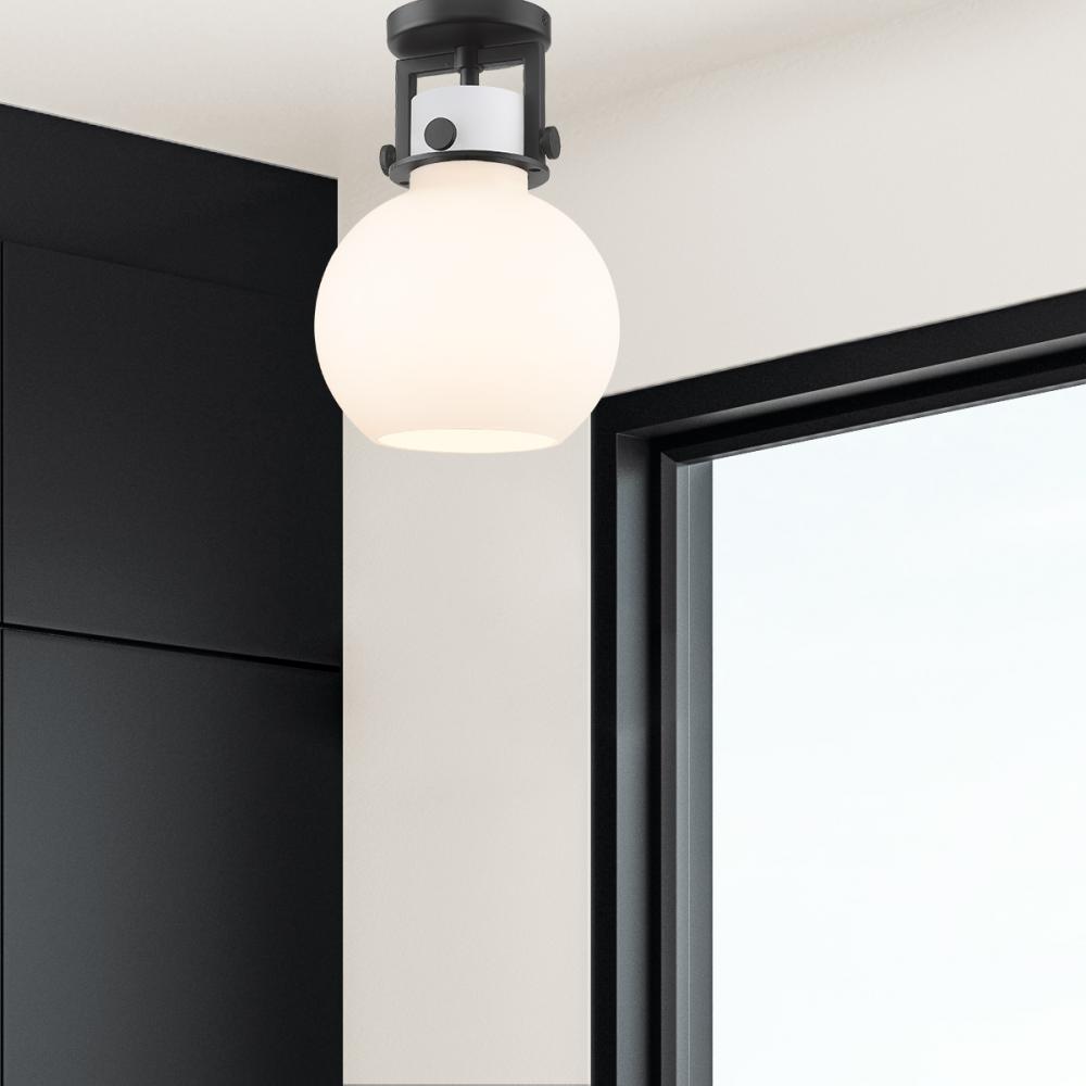 Newton Sphere - 1 Light - 8 inch - Matte Black - White Shade - Semi-Flush Mount