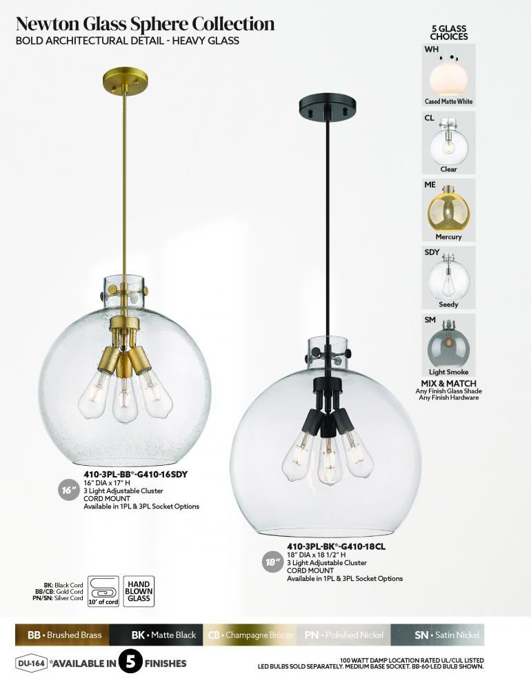 The Newton Sphere is a modern industrial collection that incorporates exceptional architectural details with a beautiful globe shaped shade. The iconic sphere shaped shade is available in either glass or heavy spun metal, making this collection perfect fo