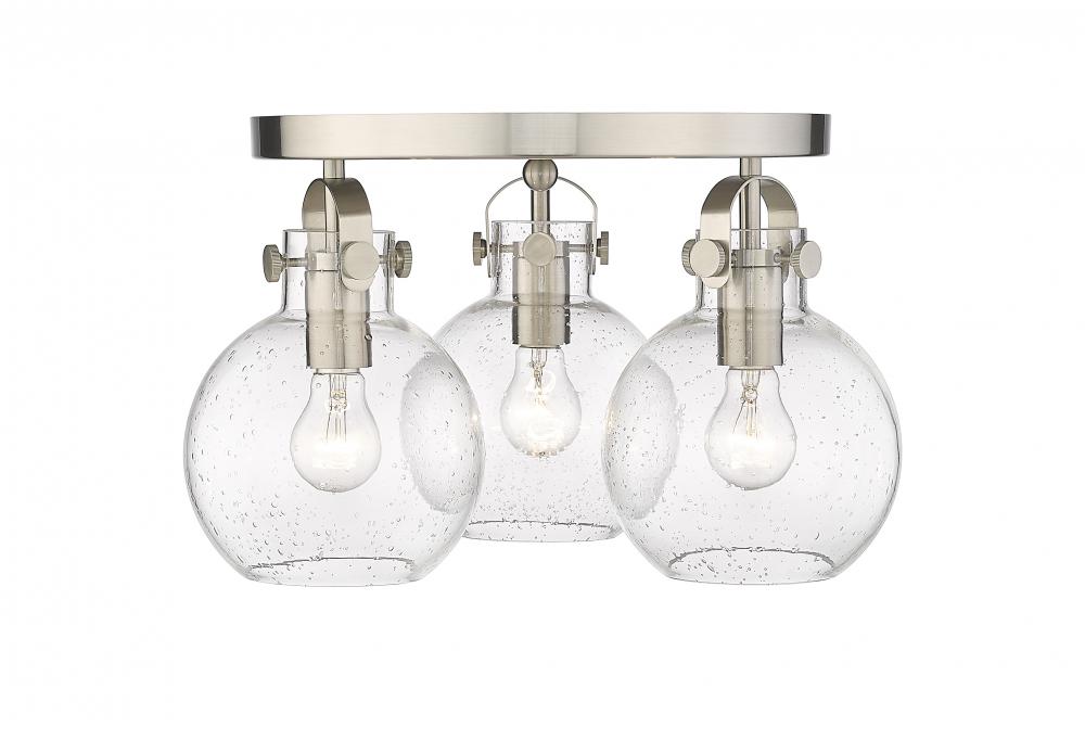 Newton Sphere - 3 Light - 18 inch - Satin Nickel - Seedy Shade - Semi-Flush Mount