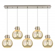 Newton Sphere - 5 Light - 40 inch - Brushed Brass - Seedy Shade - Cord hung - Linear Pendant