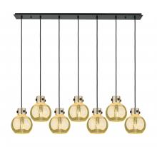 Newton Sphere - 7 Light - 52 inch - Matte Black - Seedy Shade - Cord hung - Linear Pendant