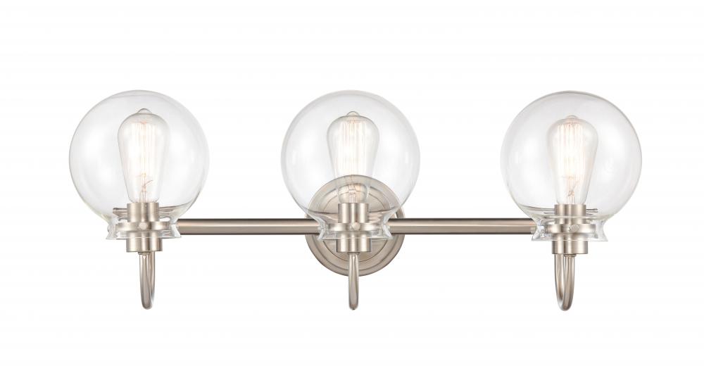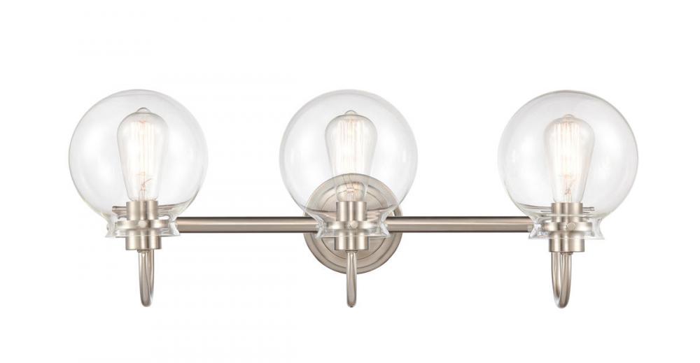 Olivia - 3 Light - 27 inch - Satin Nickel - Clear Shade - Bath Vanity Light