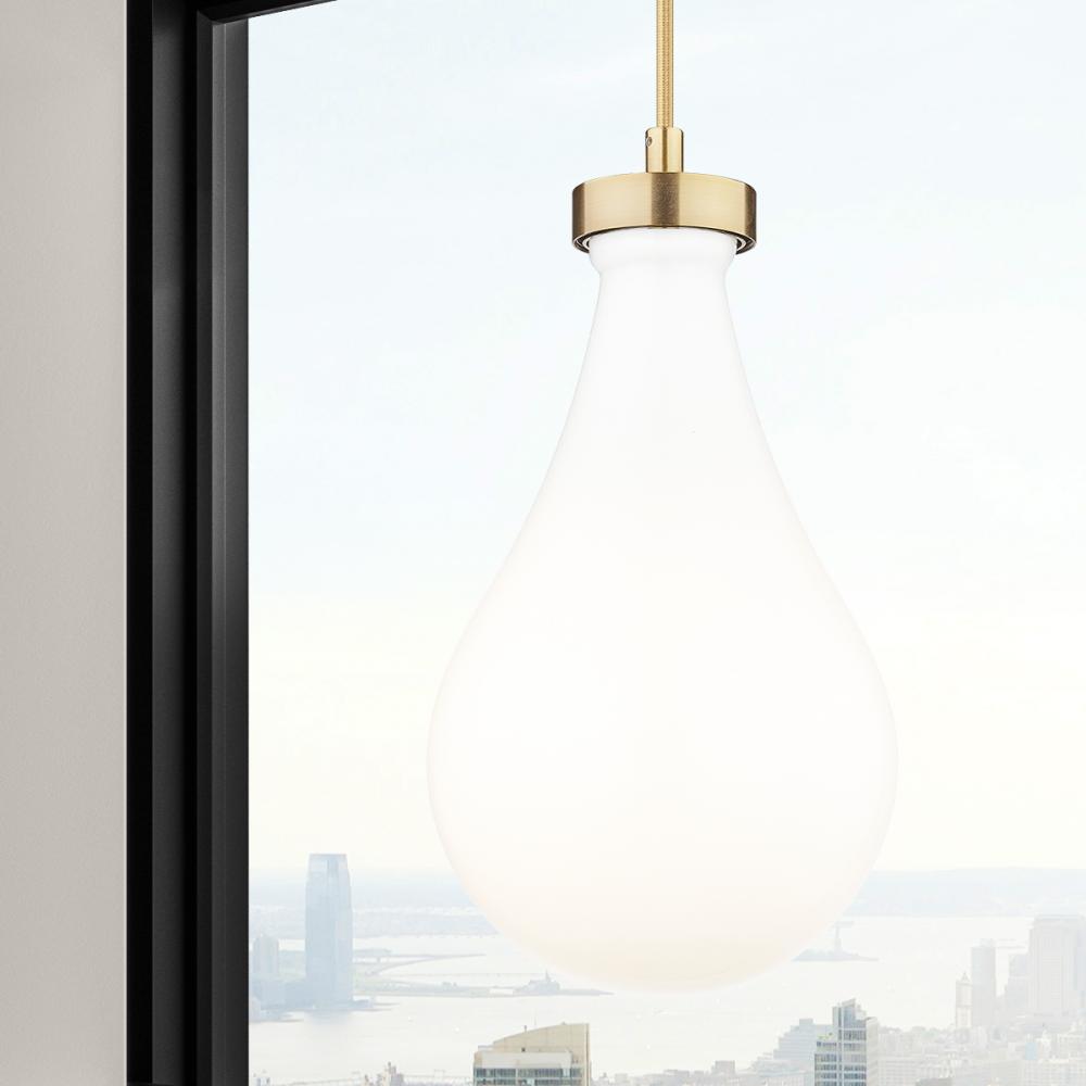 The organic teardrop shape of the Owego pendant is artfully hung from a tiered metal frame that is complemented by a single filament bulb. These pendants look great as individual fixtures but make a grand statement when paired with our multi-port hanging