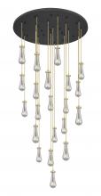 The organic teardrop shape of the Owego pendant is artfully hung from a tiered metal frame that is complemented by a single filament bulb. These pendants look great as individual fixtures but make a grand statement when paired with our multi-port hanging