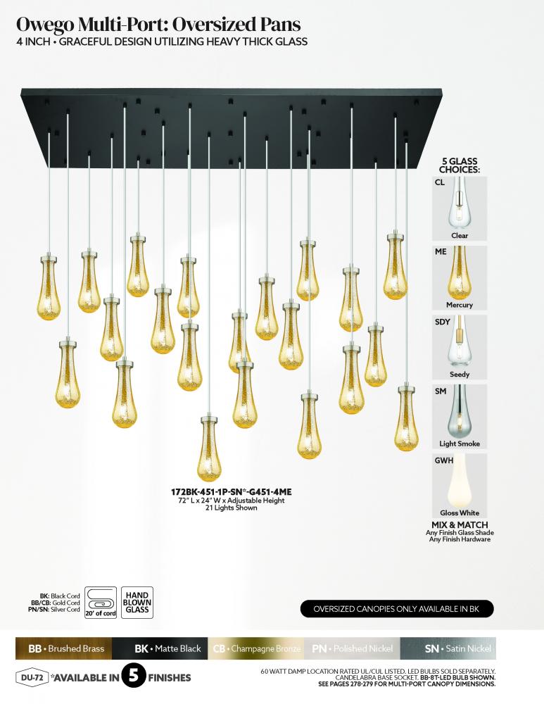 Owego - 21 Light - 71 inch - Brushed Matte Black - Seedy Shade - Multi Pendant