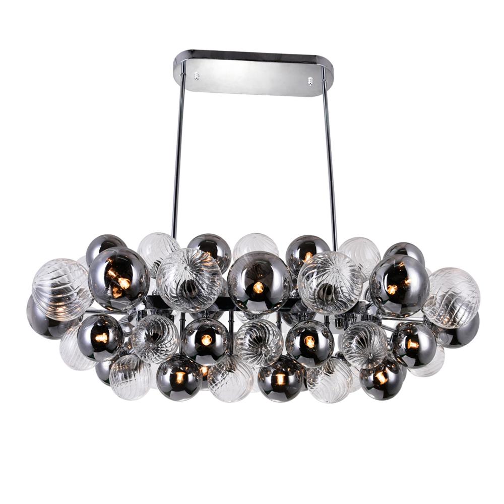 Add sophistication effortlessly in your kitchen, dining room, or entertainment room with this Pallocino 27 Light Island/Pool Table Chandelier in Chrome Finish. A linear cluster of tinted glass balls is ready to shine a luxurious glow to your space. Expect