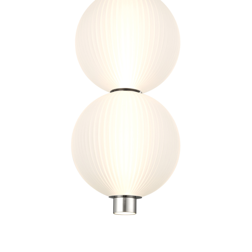To create a string of natural pearls of the same size is a painstaking process that requires years of experience. Replace that hand-knotted string with a shaft of light and surround it with ribbed spheres and the same timeless elegance can now add quiet flair to interior fashion. That is Palmas in all of its configurations.