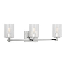 The Parker Vanity series is the perfect fusion of form and function. Its sleek design, crackle glass shade, and superior craftsmanship make it the perfect choice for any bathroom setting. Available in four finishes, Parker includes a rectangular backplate and a horizontal bar that connects to the lamp holders surrounded by a cylindrical clear crackle glass shade to bathe the room in an inviting, dimmable glow.