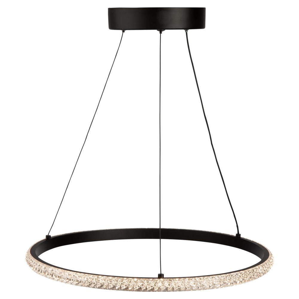 The Nova collection simply looks like jewelry suspended on thin cables. Illuminated by bright energy efficient LEDs the crystalline components sparkle from every angle. The frame, canopy, and wiring are black (These models are dimmable with appropriate LED rated dimmer switches).