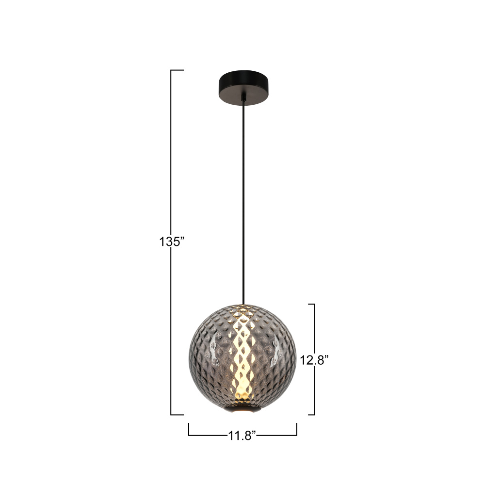 The LED pendant from the Celeste collection is a symphony of sophistication, featuring a mesmerizing diamond-patterned ombre smoke glass that gracefully encases an illuminated inner white tube. Its gunmetal-finished metalwork adds a rich, modern allure, making it a standout centerpiece for any room. A clever peek-hole design at the bottom casts a focused beam of light downward, while the ambient glow from the sides creates a warm and inviting atmosphere. This elegant fixture is a harmonious blend of form and function, perfect for elevating your space with timeless charm. The textile wire cover is designed for elegance and ease height adjustment.