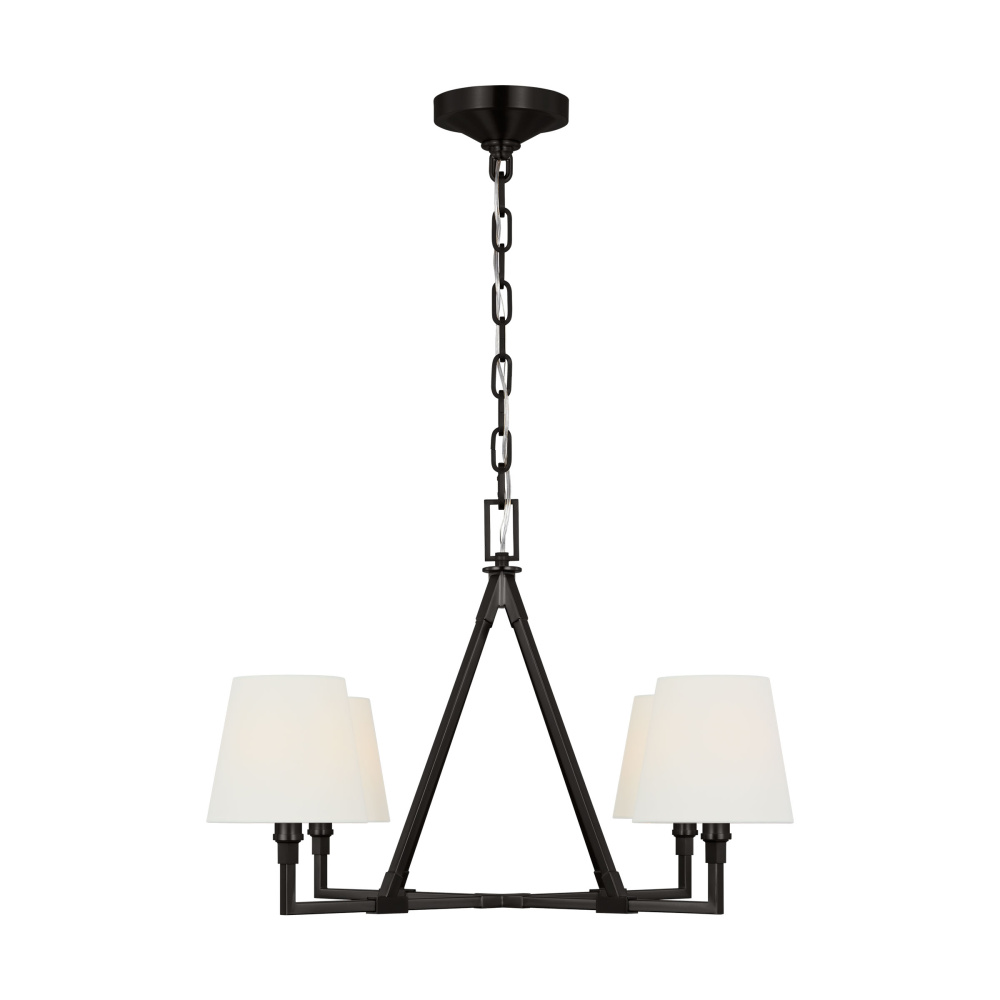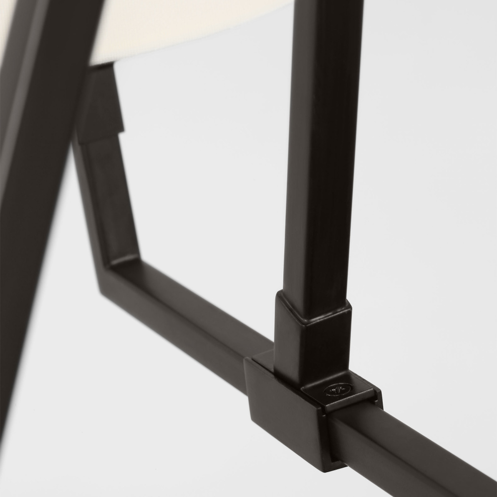 The Perth Collection is a modern and angular take on a traditional trestle form - often seen in furniture and bridges. The arms of the chandeliers are suspended from a triangular frame which both adds strength and a distinctive overall profile. Each item is made from square tubing accented with bracket details where the arms and supports intersect.