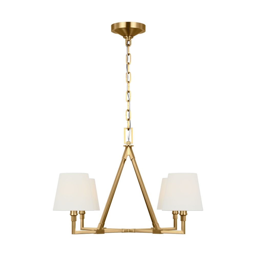 The Perth Collection is a modern and angular take on a traditional trestle form - often seen in furniture and bridges. The arms of the chandeliers are suspended from a triangular frame which both adds strength and a distinctive overall profile. Each item is made from square tubing accented with bracket details where the arms and supports intersect.