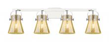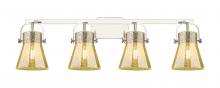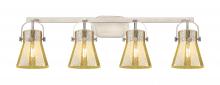 Pilaster II Cone - 4 Light - 37 inch - Satin Nickel - Seedy Shade - Bath Vanity Light