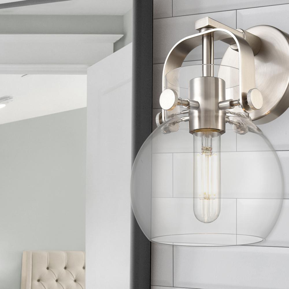 Pilaster II Sphere - 1 Light - 7 inch - Satin Nickel - Clear Shade - Sconce