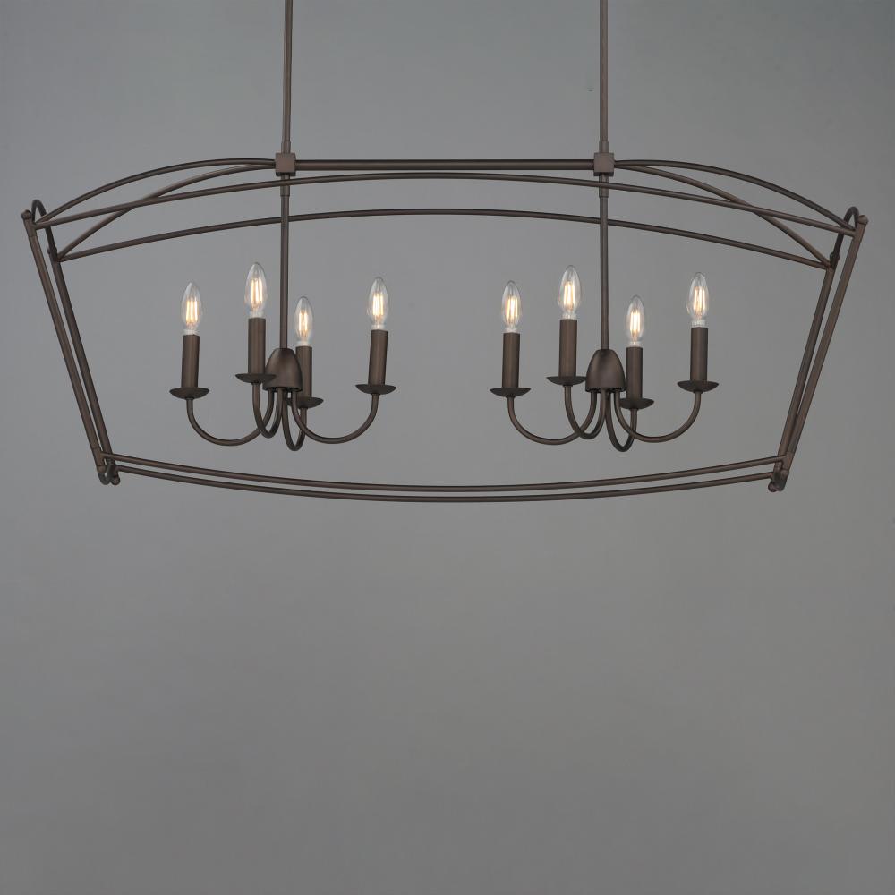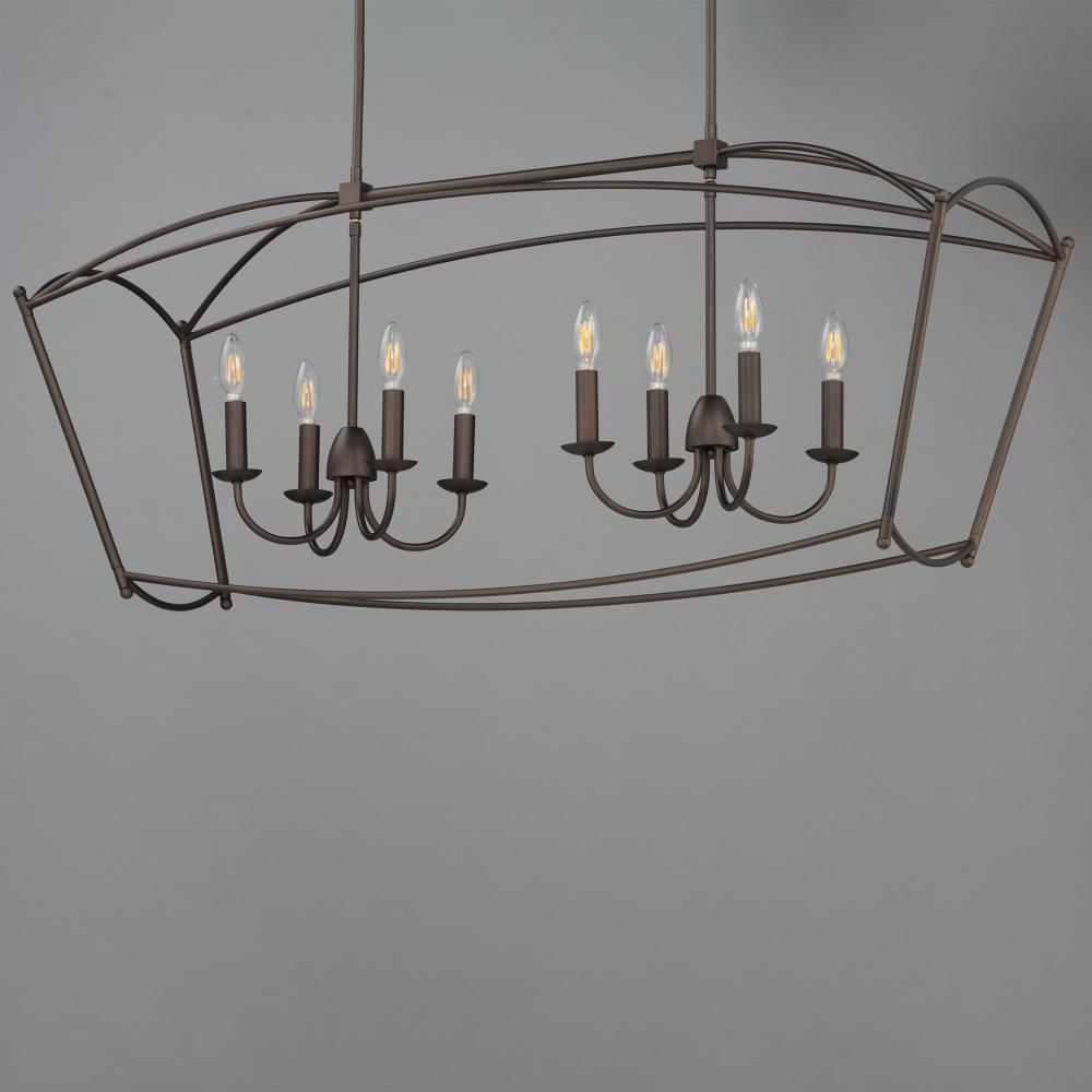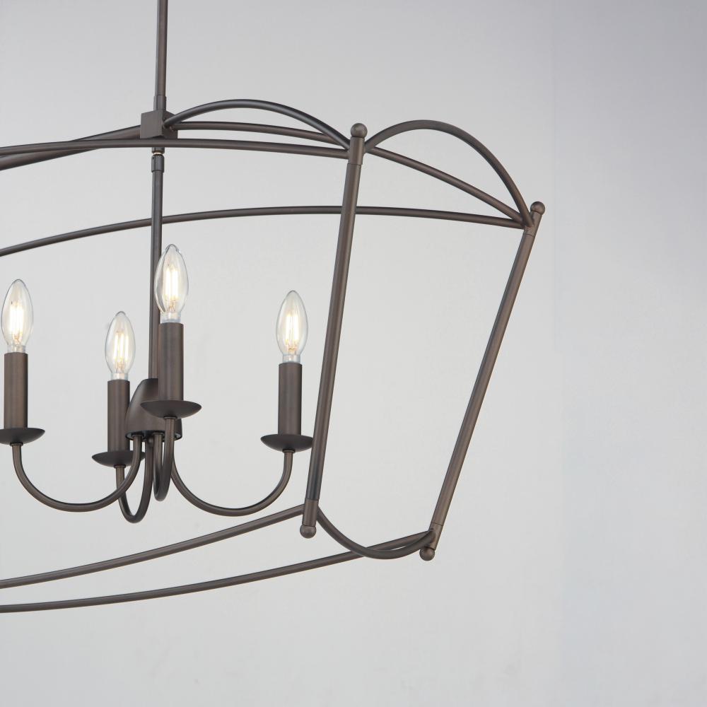 Sweeping metal accents links create classic curves on a minimalist chandelier. Available in hand-rubbed Chestnut Bronze or elegant Gold Leaf finishes. Add crystal accents to elevate the design for a more extravagant glamour. The design manages to evoke Fre