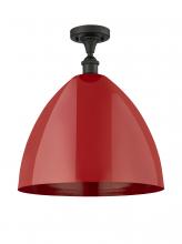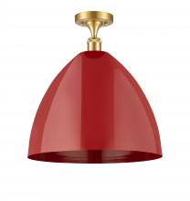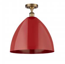 Plymouth - 1 Light - 16 inch - Antique Brass - Red Shade - Semi-Flush Mount