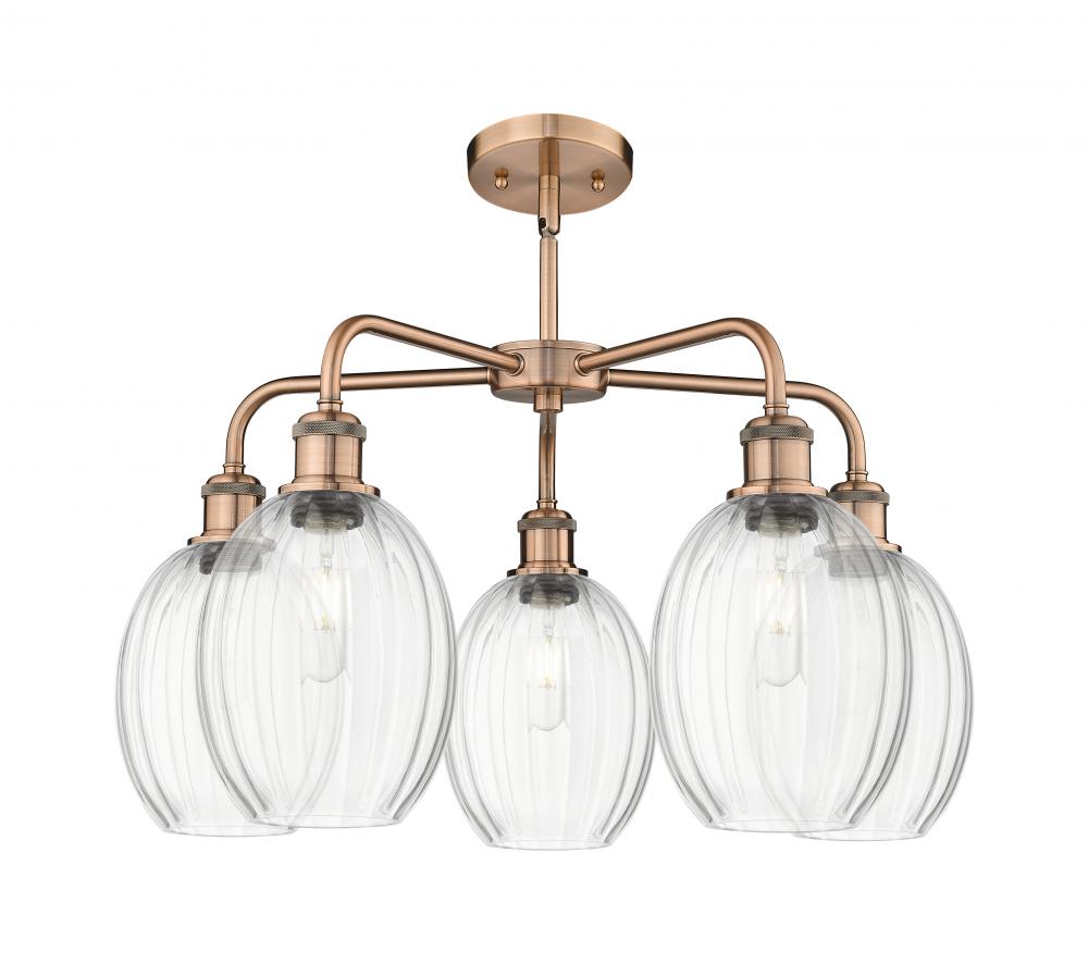 Preston Bulb - 5 Light - 25 inch - Antique Copper - Clear Preston Bulb shade - Stem hung - Chandelier