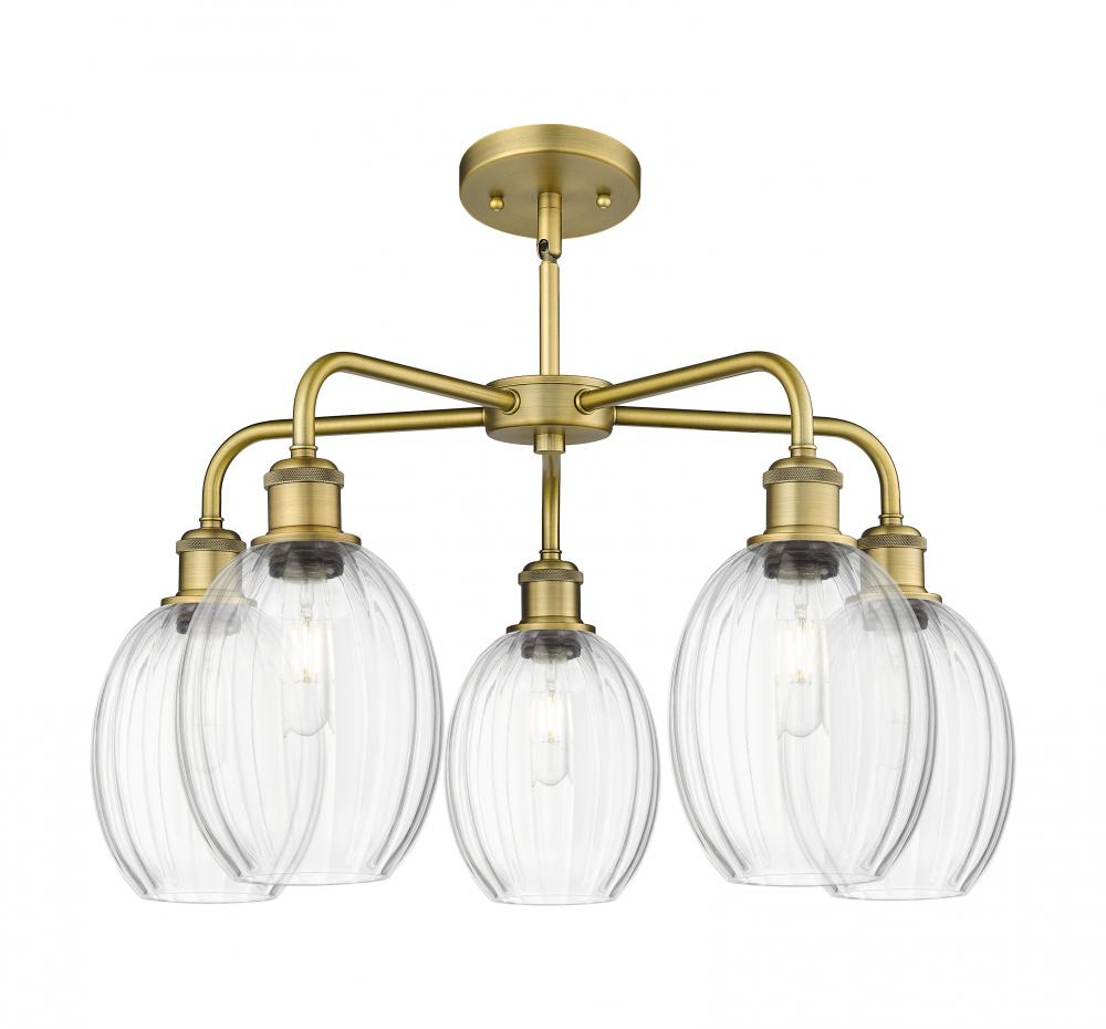 Preston Bulb - 5 Light - 25 inch - Brushed Brass - Clear Preston Bulb shade - Stem hung - Chandelier