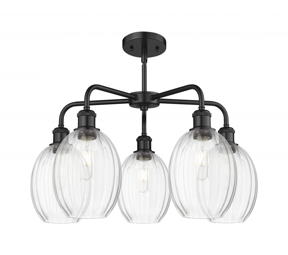 Preston Bulb - 5 Light - 25 inch - Matte Black - Stem hung - Chandelier