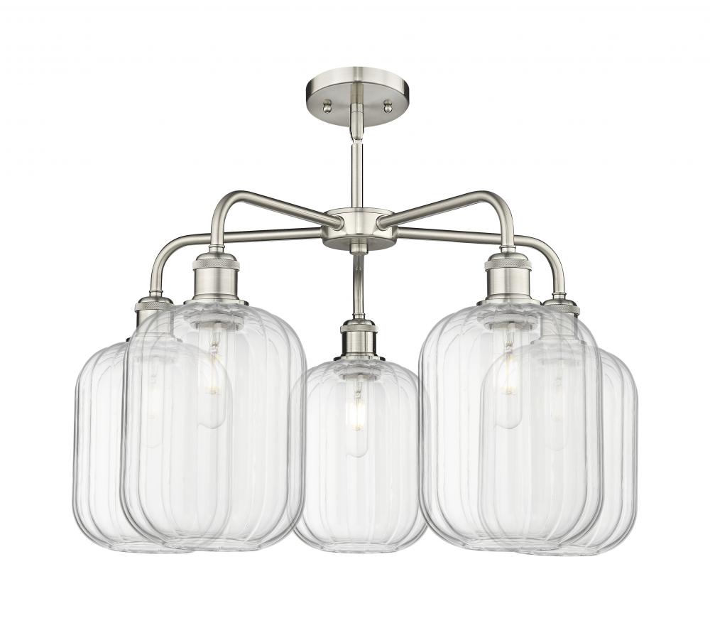 Preston Cylinder - 5 Light - 25 inch - Satin Nickel - Clear Preston Cylinder shade - Stem hung - Chandelier