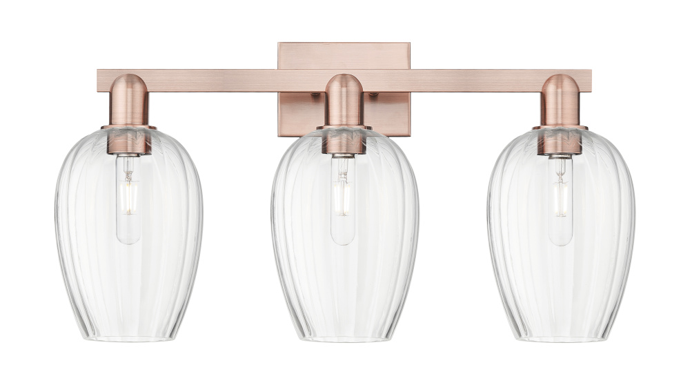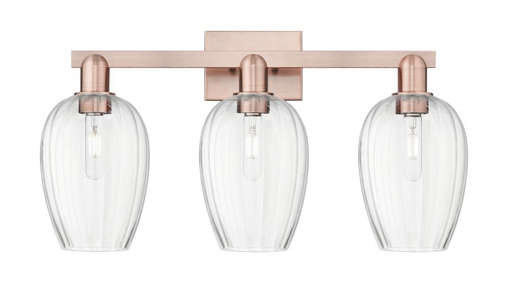Preston Flute - 3 Light - 26 inch - Antique Copper - Clear Preston Flute Shade - Bath Vanity Light