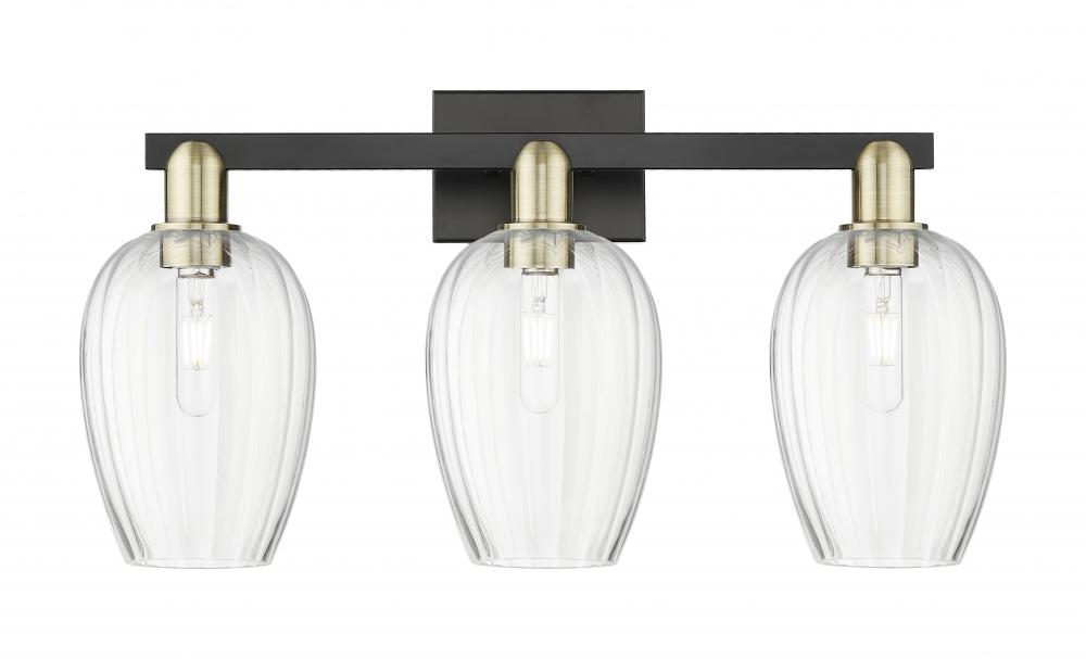Preston Flute - 3 Light - 26 inch - Black Antique Brass - Clear Preston Flute Shade - Bath Vanity Light