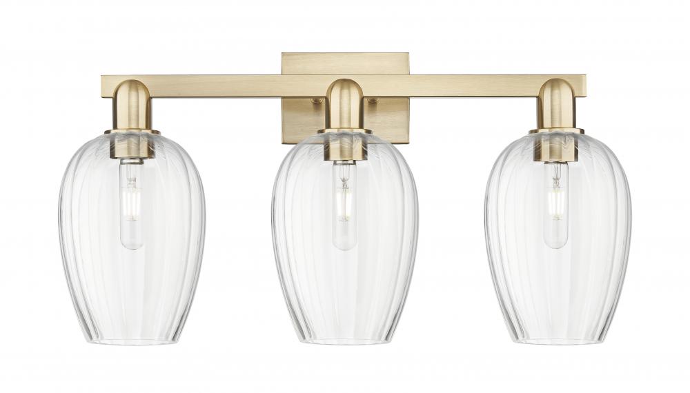 Preston Flute - 3 Light - 26 inch - Champagne Bronze - Clear Preston Flute Shade - Bath Vanity Light