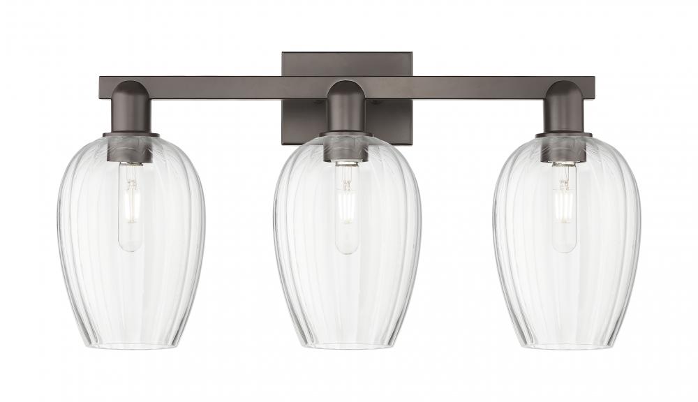 Preston Flute - 3 Light - 26 inch - Oil Rubbed Bronze - Clear Preston Flute Shade - Bath Vanity Light