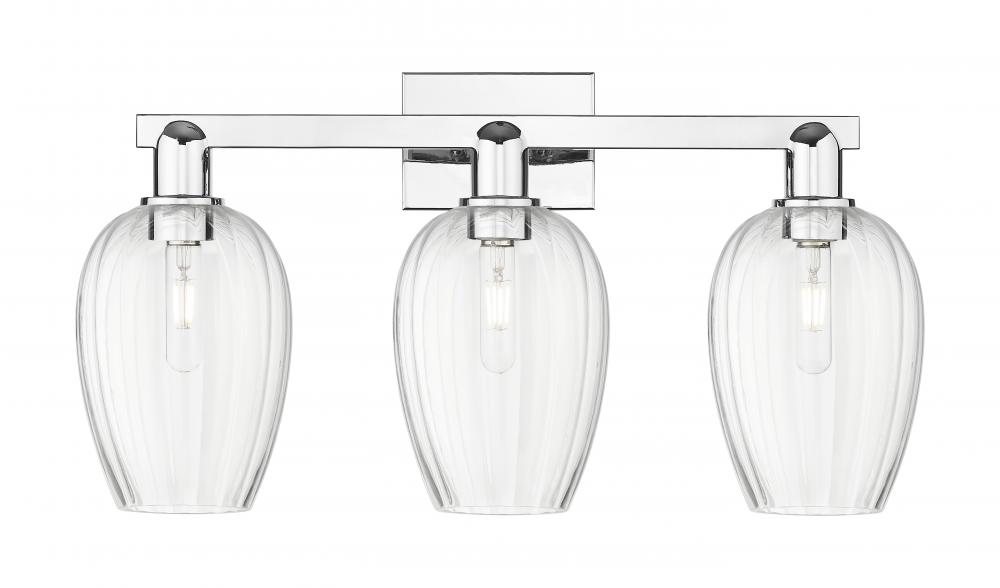 Preston Flute - 3 Light - 26 inch - Polished Chrome - Clear Preston Flute Shade - Bath Vanity Light