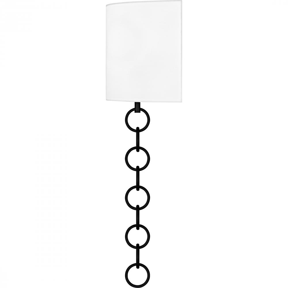 The Baynes wall sconce adds a touch of traditional elegance to any space with its refined design. Featuring a white fabric shade, this sconce provides a soft, ambient light that enhances the warmth and charm of your room. The large chain detail, available