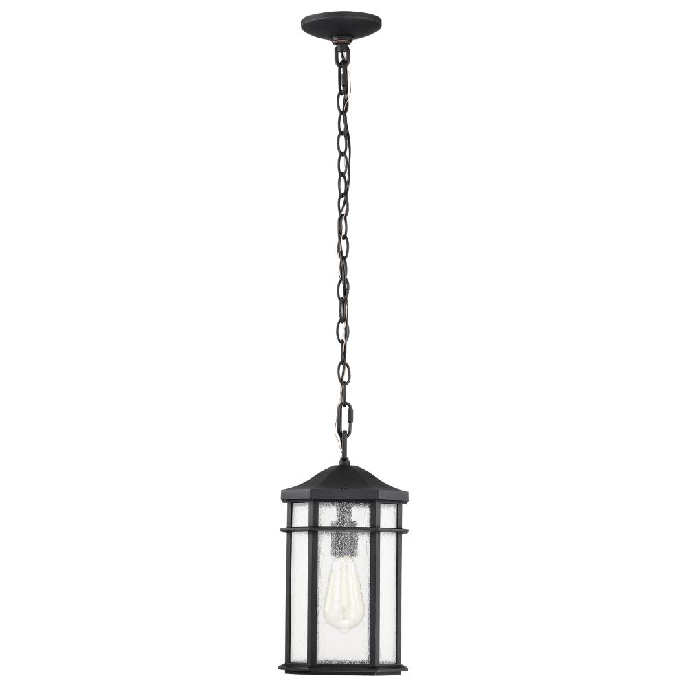 The Raiden 60-5759 Outdoor Hanging Light features a traditional design yet is suited to today's contemporary lighting styles. The clear seeded glass delivers an aged patina softly illuminated by the bulb. The matte black finish showcases the fixture