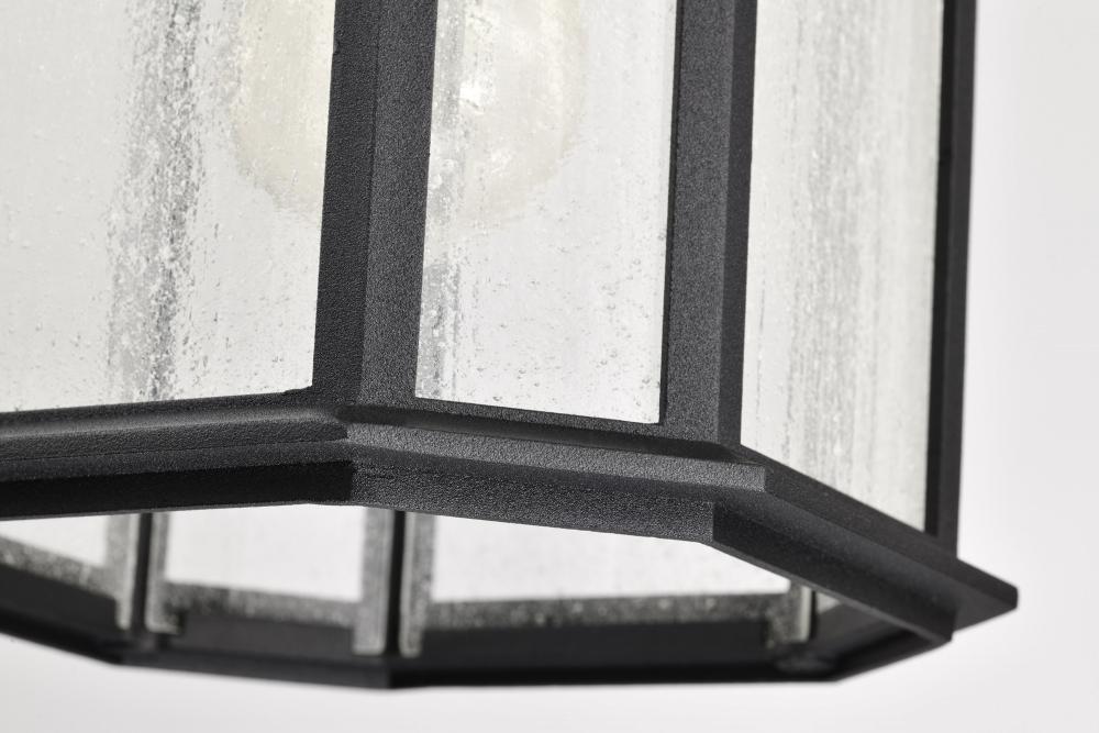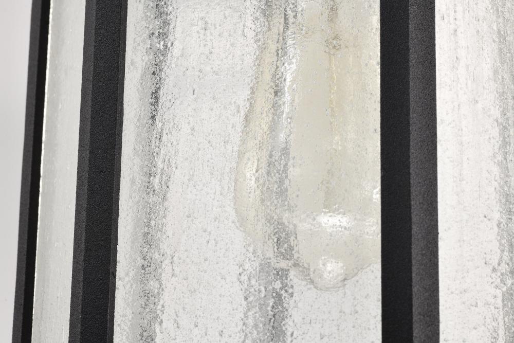 The Raiden Collection features a traditional design yet is suited to today's contemporary lighting styles. The clear seeded glass delivers an aged patina softly illuminated by the bulb. The matte black finish showcases the fixture's structure and w