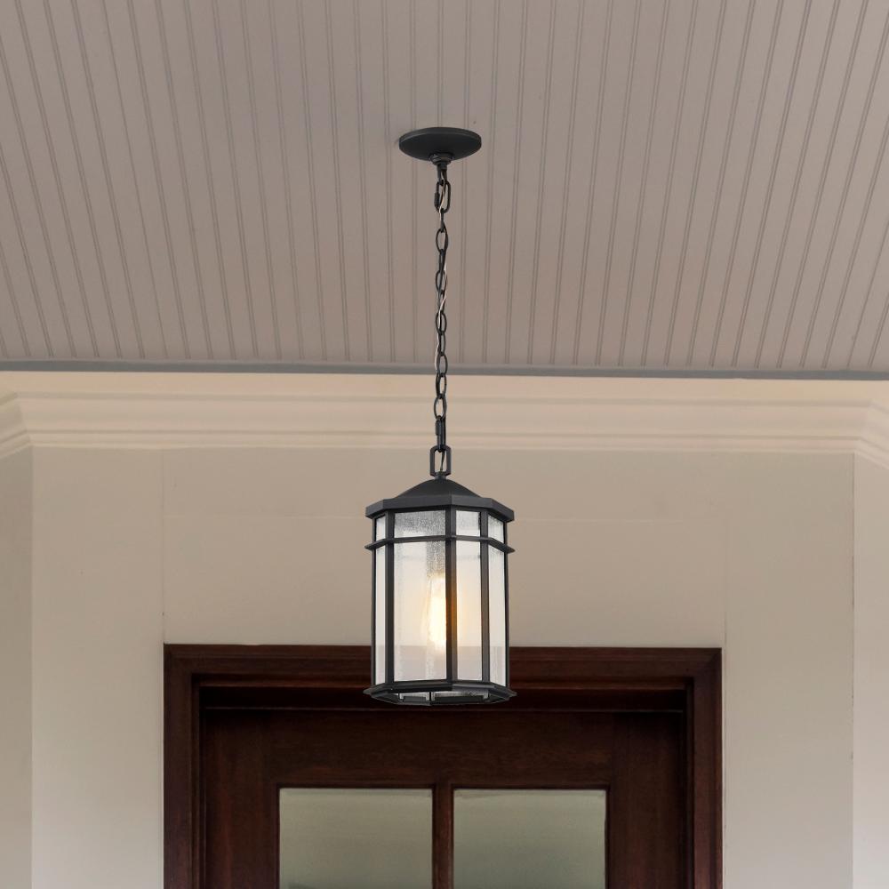 Raiden Collection Outdoor 14.5 inch Hanging Light; Matte Black Finish with Clear Seedy Glass